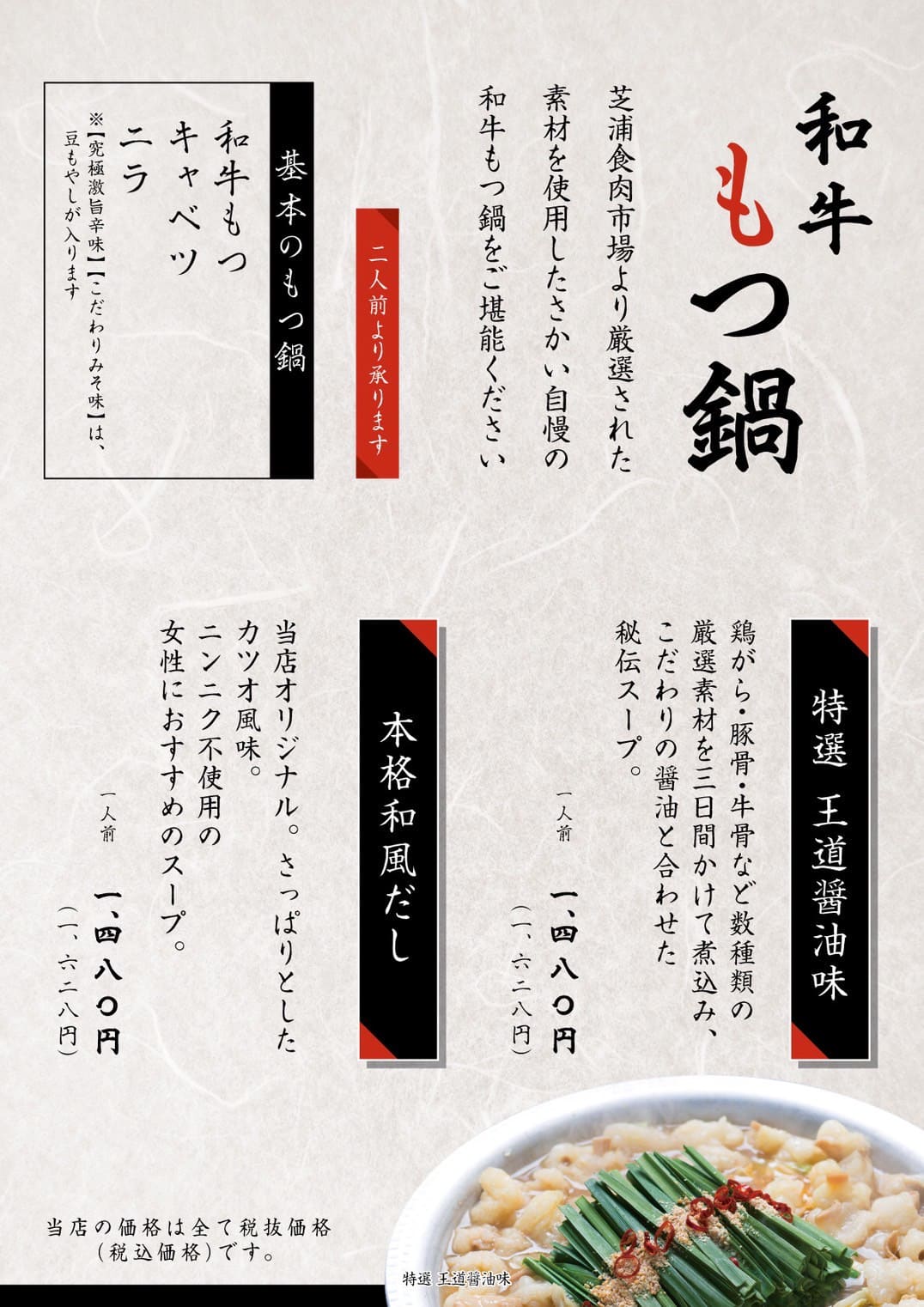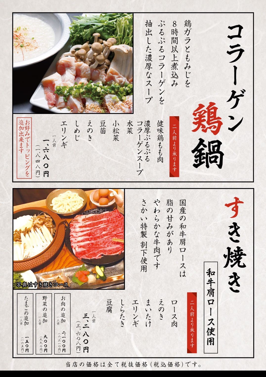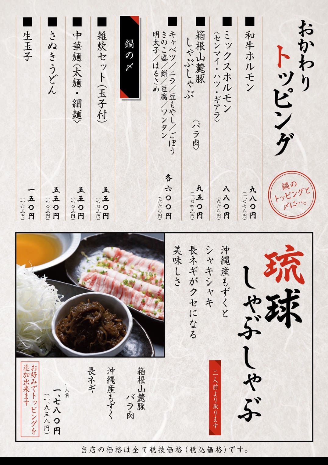 鍋メニュー(税込)